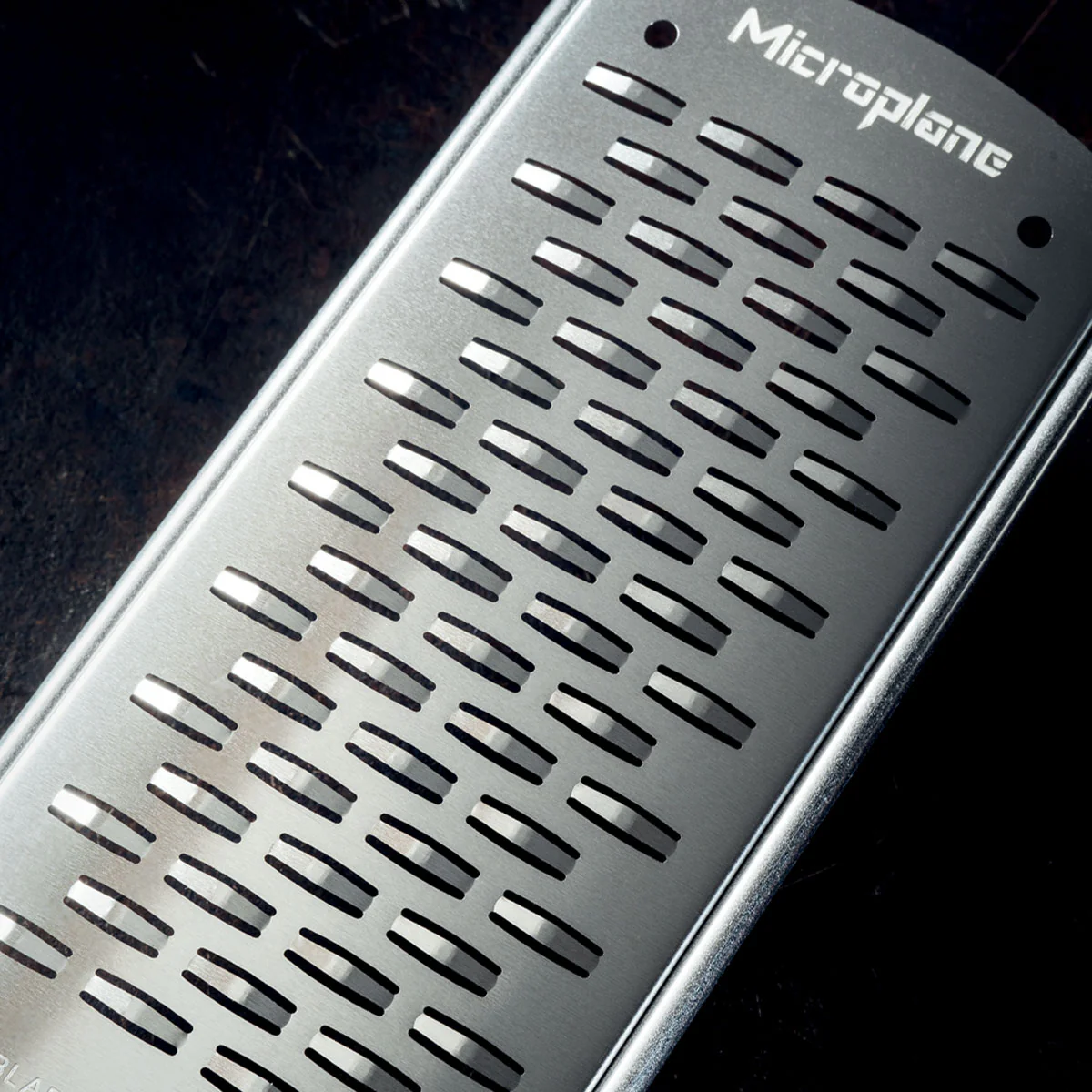 The Microplane Gourmet Series has an expansive paddled with ample grating surfaces and US made stainless steel blades. Ultra-sharp photo etched teeth make fast work out of grating potatoes, carrots, onions and cheeses. The Stainless steel frame provides extraordinary durability. The soft-touch handle matches back to the premium classic series zesters. The non-skid foot adds stability when grating on counters and plates.